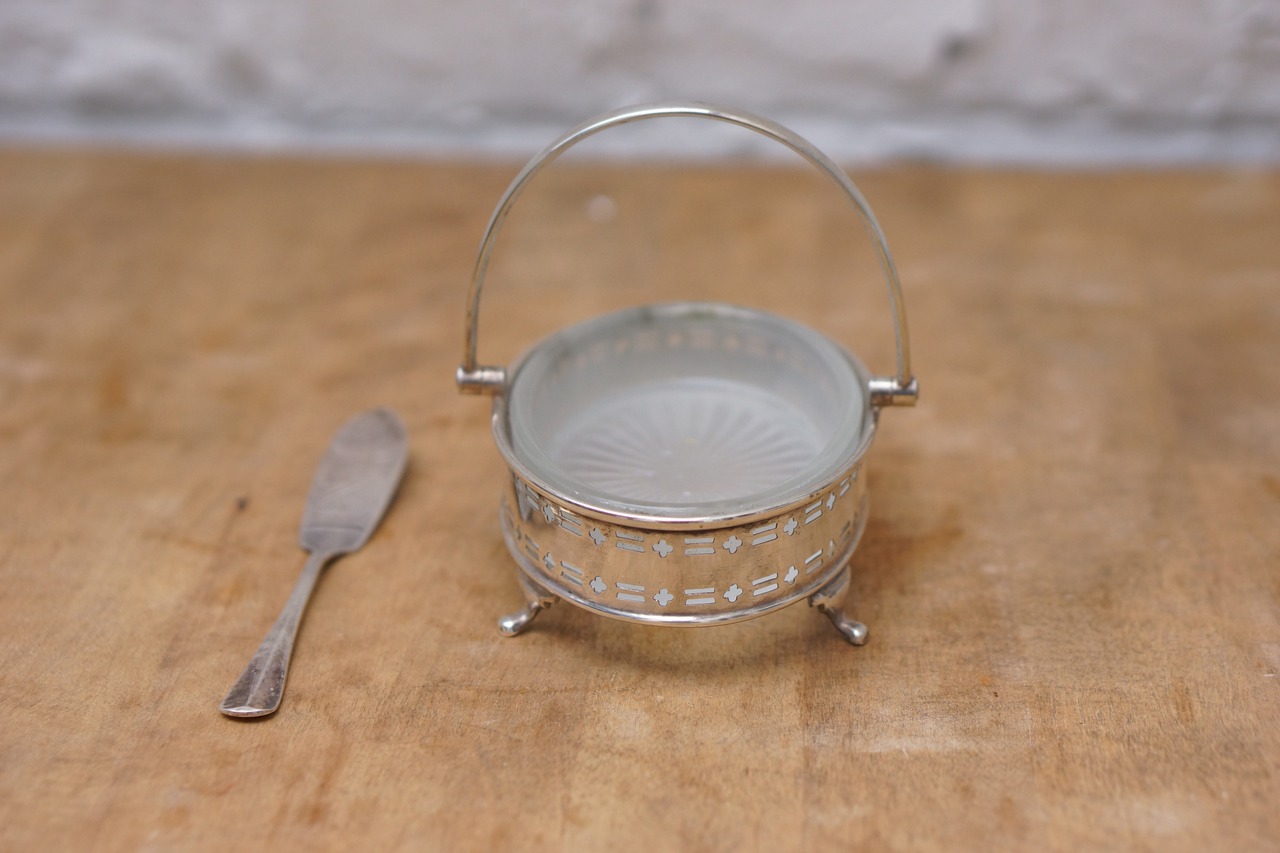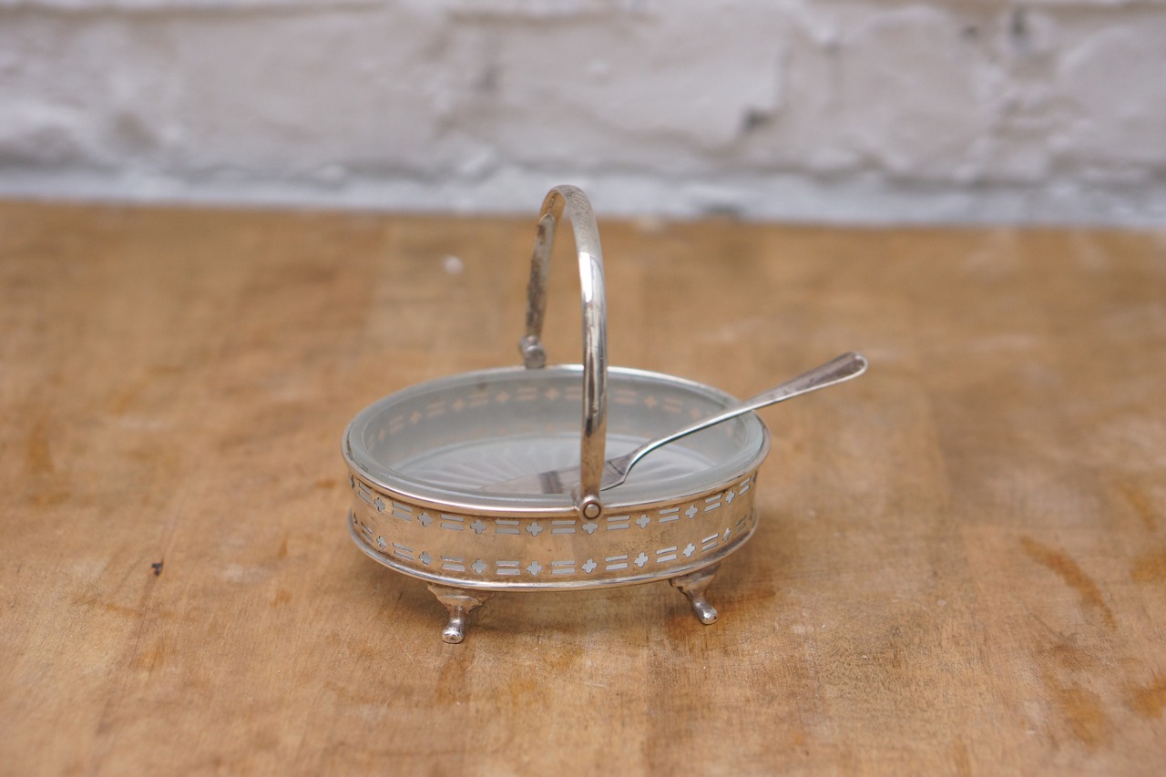 ヴィンテージのシルバーバターまたはジャム容れ。